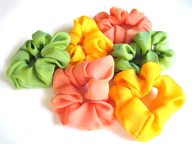 シルク マルチカラー シュシュです。 色とりどりのカラー シュシュは、コーデに花を添えてくれます。 シンプルなタイプを選ぶと、スタイリングしやすいですね。