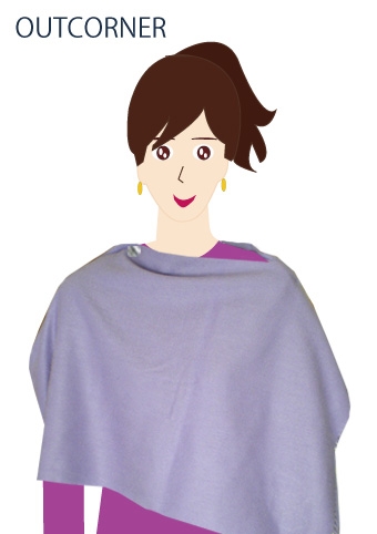 ボタン付きの定番カシミア ストールです。 シンプルな定番ストールにボタンが付いているだけです。 ボタンを留めてポンチョ風に ボタンを外してシンプルに羽織りストールに 首に一巻きカジュアルな巻きものに その日の気分でアレンジが楽しめます。 ボタンが付いているだけで多様なコーデが出来る便利なアイテムになりますね。
